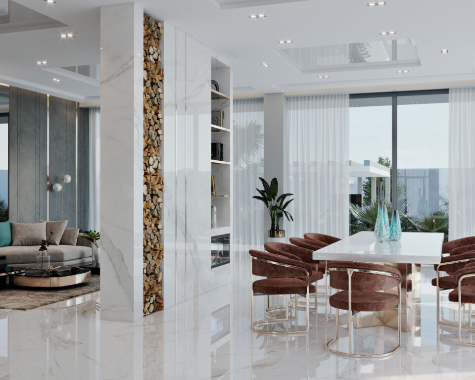 Проект выполнен в современном стиле,площадь виллы составляет 650 кв.м. Волшебство дизайнерских решений и гармония цветов – именно так можно охарактеризовать наш новый проект на побережье поселка Бильгя! Интерьер виллы получился по-настоящему сказочным, с яркими акцентами, потрясающими инсталляциями и поражающими воображение элементами декора. Панорамные окна наполняют пространство светом и воздухом, а продуманный сценарий освещения позволяет создавать ощущение, соответствующее настроению в любой момент времени.Ключевым цветом, который присутствует в интерьере каждого помещения ,это насыщенный светло серый цвет. Мы создаём абсолютно эксклюзивный интерьер, который подарит хозяевам уют домашнего тепла и подчеркнёт их особый статус.