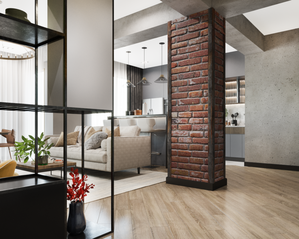 Стиль лофт набирает популярность не только у владельцев больших жилых пространств, но и владельцев небольших квартир.Данный проект имеет сочетание стиля лофта и экостиля .Площадь квартиры 90 кв.м. В оформлении репрезентативной зоны традиционные приметы стиля лофт (кирпичные стены, незамаскированные вспомогательные конструкции) сочетается с природной теплотой экостиля. Задача была создать атмосферу свободы, молодости, отказ от помпезности и украшательства .